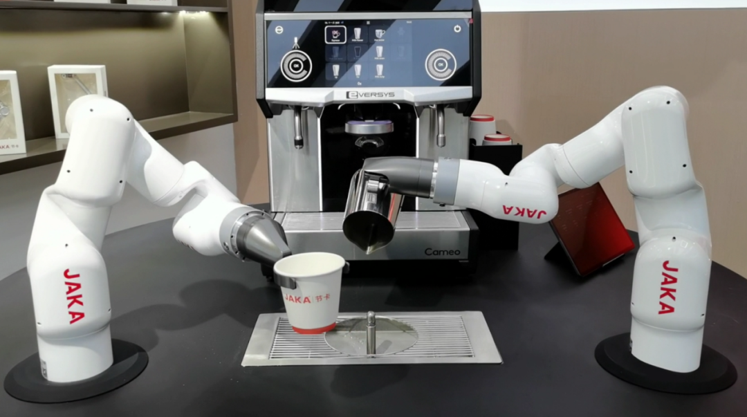 看点三:安全技术应用突出 现有的协作机器人安全技术主要通过事前主动预防和事后控制来保证。事前主动预防主要是在协作机器人上安装超声波、视觉、光电等传感器来实时检测判断机器人与障碍物之间的相对位置,采取适当的控制措施防止碰撞发生。 事后控制是针对人和协作机器人发生碰撞时采取的安全保护措施,主要通过设计轻型机械臂、机械本体增加弹性材料、设计柔顺关节,采用力/位混合控制,使用力觉、触觉等传感器检测碰撞方法来降低碰撞冲击力,防止对人造成二次伤害。目前,节卡机器人主要通过“视觉防护+碰撞停止+卸力回弹+防夹推拉”来实现多重安全防护,帮助客户提升产品在全生命周期中的安全性,最终实现安全可靠的生产目标。 看点四:前沿技术领域研究与应用增多 协作机器人近年能够成为主要研究热点,并被广泛关注,离不开协作机器人相关核心技术的研究与推动应用。在协作机器人前沿技术领域,小型化、轻量化的新型机构和材料研究将进一步提升协作机器人的运动性能,同时驱动方式、传感多模态和仿生控制等也是协作机器人前沿领域重点关注的内容。 感知与认知技术、人机交互技术和碰撞检测技术等将快速推动协作机器人的自主性、柔顺性、安全性与舒适性。以节卡机器人为代表的协作机器人企业通过钻研前沿技术和打磨应用技术,率先步入柔性智能机器人赛道,在协作机器人安全、便捷、易于部署等基础上重建机器人“大脑”,以先进的视觉处理、AI技术和云计算加持,使之更智慧地处理外部场景,真正适应快速、多变而复杂的大规模定制生产。 ▍4大前沿发展趋势预判前沿发展趋势一:智能感知——多学科交叉融合 感知是协作机器人与人、协作机器人与环境、以及协作机器人之间进行交互的基础。就感知技术而言,除了多传感信息融合之外,协作机器人越发呈现出与脑神经科学、生物技术、人工智能、认知科学、网络大数据技术等深度交叉融合的态势。未来的研究方向为主动感知与自然交互理论及方法,更多传感器的加入,使协作机器人能够理解人类指令(通过声音、手势、图形)。基于对复杂动态环境下知识的主动获取、学习与推理方法、视觉认知与基于动态环境的主动行为意图理解与预测理论、协作机器人的自主学习与机器人知识增殖方法、以及多模态人机协作的态势感知与自然交互方法的研究,实现协作机器人与人之间相互的意图理解、信息交流,以及自然和谐的情感交互。