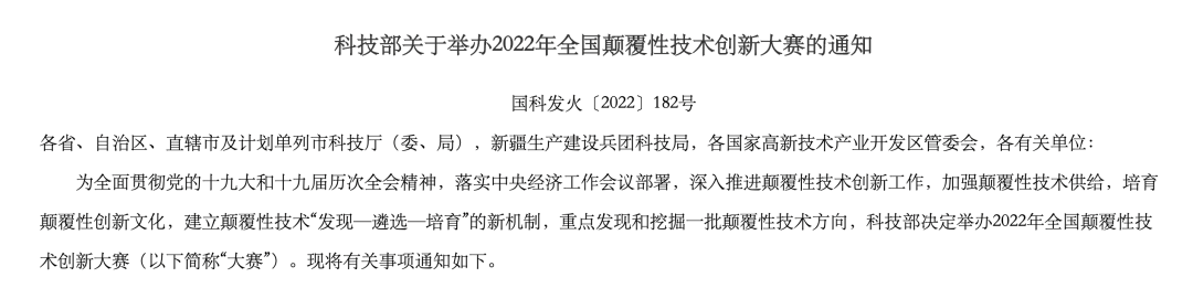 科技部举办2022年全国颠覆性技术创新大赛