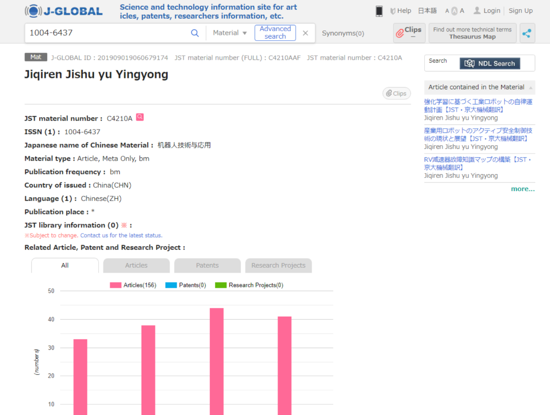 喜报!《机器人技术与应用》被日本科学技术振兴机构数据库(JST)收录