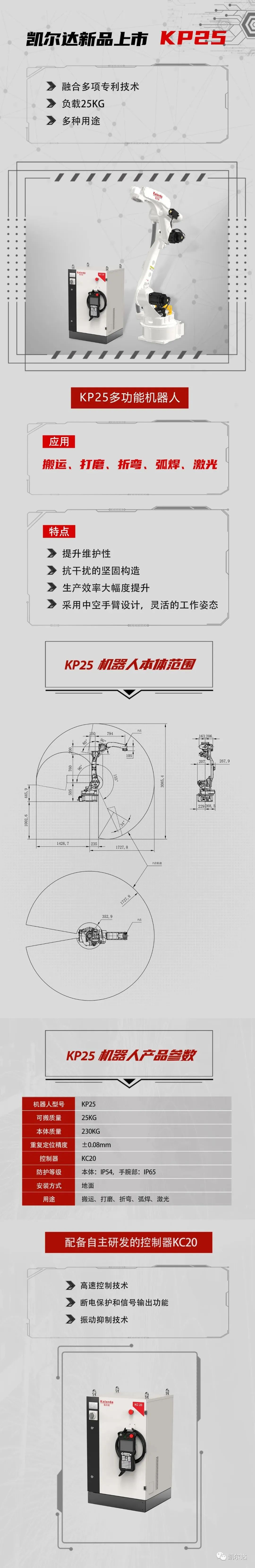 凯尔达推出新型多功能机器人KP25,可应用于搬运、打磨、折弯、弧焊、激光等多种应用场景
