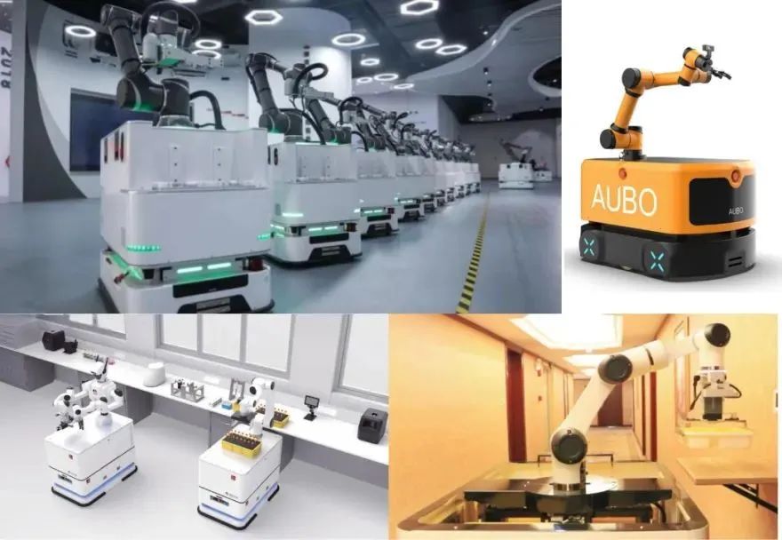 • 复合机器人由移动平台、 机械臂、 视觉模组、 末端执行器等组成,集成了移动机器人与操作机功能,融合环境感知、 定位与导航等技术,可快速布局于智慧工厂与自动化车间、 电力巡检、 仓储分拣、 自动化货仓等场景, 满足柔性生产需求,是促进制造业转型升级的关键核心装备之一。