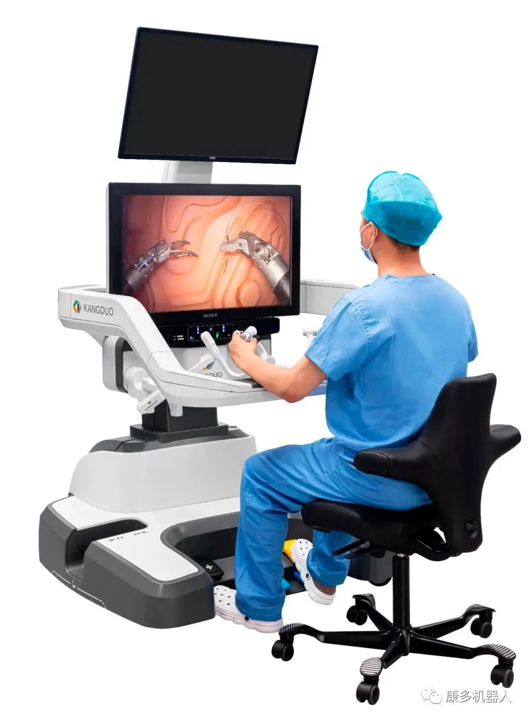 此外,康多腹腔内窥镜机器人手术系统具有国内首个开放式3D双屏幕手术机器人控制台,使术者在手术过程中有效避免以往暗箱式控制台对于术者眼部、颈部、腰椎的伤害,更符合人体工程学,极大降低了因术者疲劳或体位不适等非技术性因素对手术带来的影响,使术者可以更加舒适、更加精准的完成手术操作。