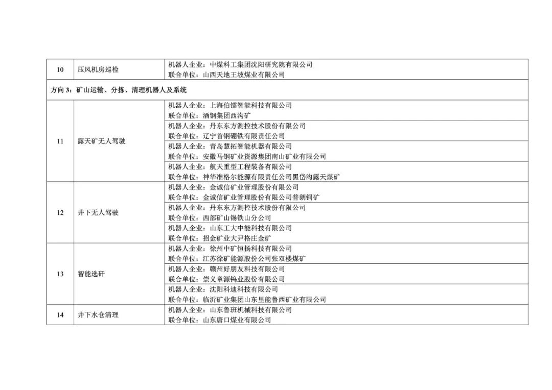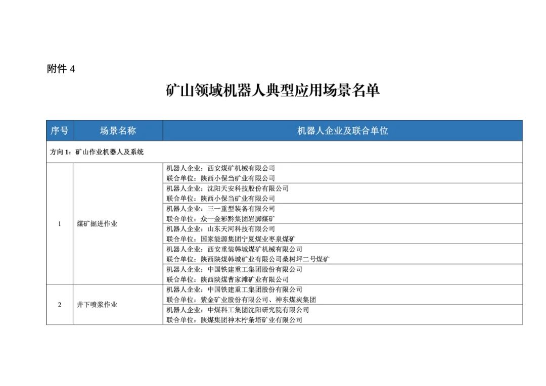 为贯彻落实《“十四五”机器人产业发展规划》,加快机器人应用推广,经地方推荐、专家评审、社会公示等程序,现将矿山领域机器人典型应用场景名单予以公布(详见下方文件)。