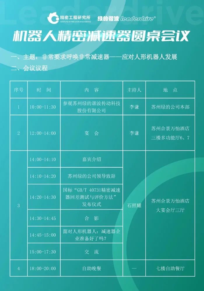 2022年8月27日,由北京市精密测控技术与仪器工程技术研究中心与苏州绿的谐波传动科技股份有限公司联合主办的“2022机器人精密减速器圆桌会议”在苏州顺利召开。本次会议以“非常要求呼唤非常减速器——应对人形机器人发展”为主题,国内本领域知名企业家、专家和学者共聚一堂,研讨了精密减速器的机遇与挑战。