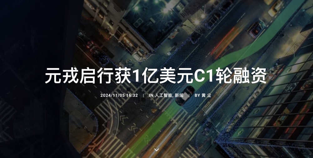 元戎启行获1亿美元C1轮融资,布局全球量产和Robotaxi运营