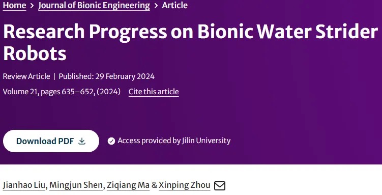 华中科技大学机械科学与工程学院周新平教授课题组:仿生水黾机器人的研究进展