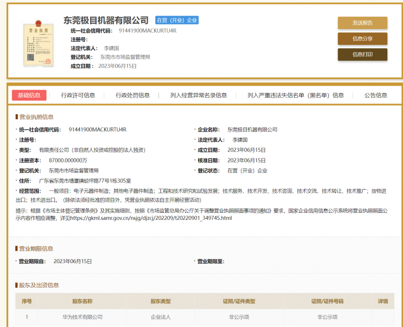 8.7亿!华为成立极目机器有限公司,布局机器人与智能制造
