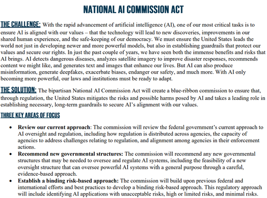 美国人工智能立法终现进展,国会两党共同提议设立国家AI委员会