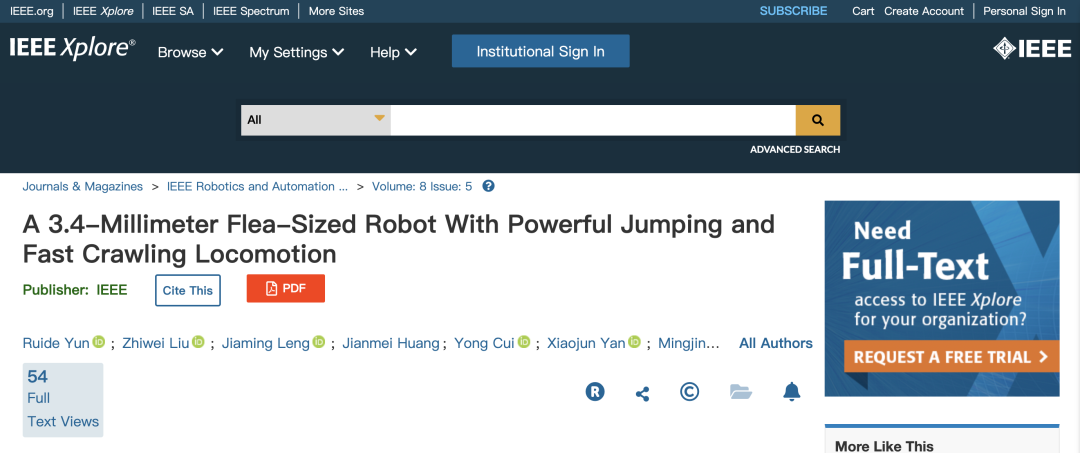北航团队设计出能够弹跳自身长度87倍的微型机器人
