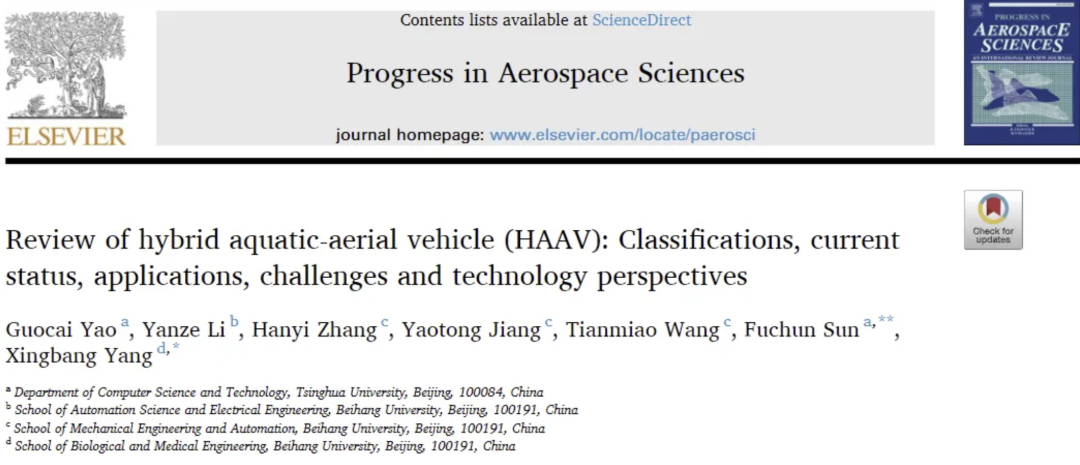 孙富春、王田苗联合发布跨介质飞行器发展现状与关键技术综述,发表在Progress in Aerospace Sciences