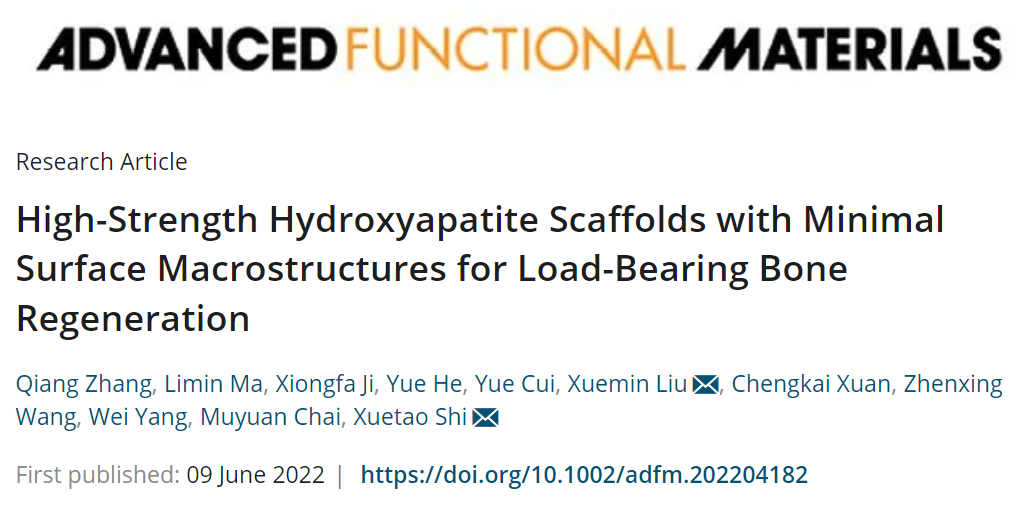 华南理工大学施雪涛团队:具有仿生结构的三周期极小曲面(TPMS)羟基磷灰石骨修复支架