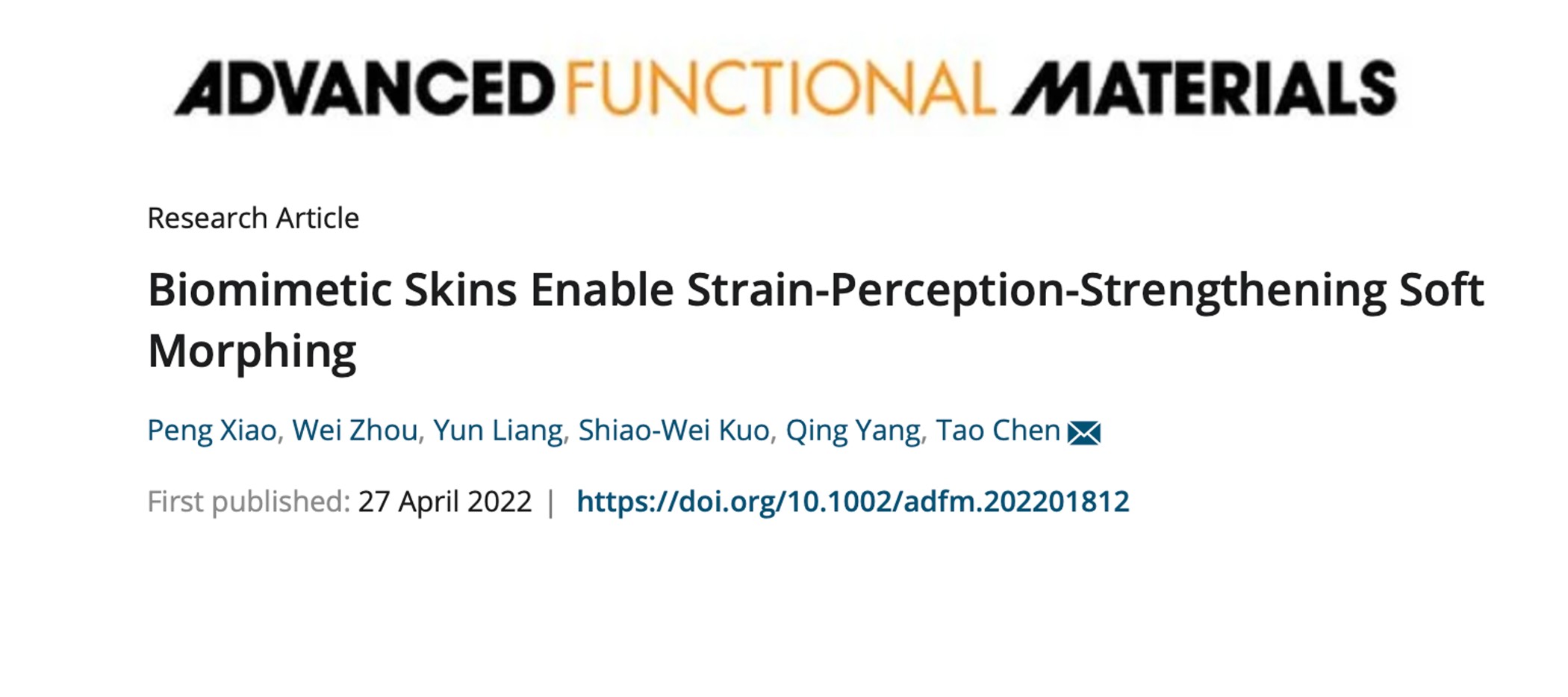 中国科学院宁波材料技术与工程研究所智能高分子材料团队陈涛研究员和肖鹏副研究员基于在碳基/高分子复合薄膜的构筑及其柔性驱动与传感方面的研究基础,受生物软组织应变机械增强的启发,提出了基于SPS效应的仿生皮肤,实现从触觉到痛觉感知的动态转变。
