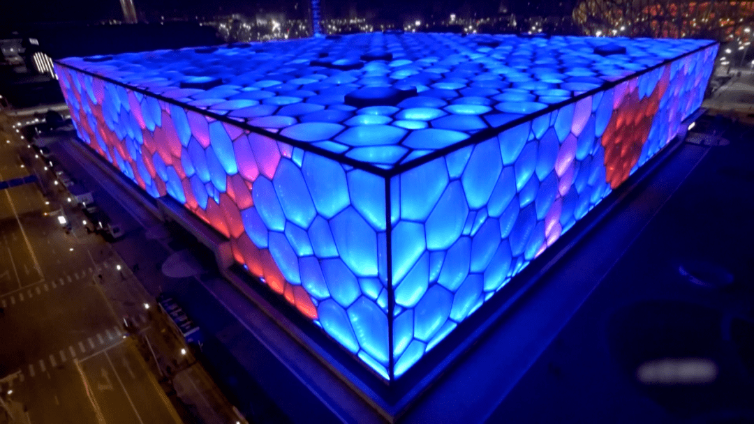 “冰立方”是冬奥会历史上体量最大的冰壶场馆,世界唯一水上项目和冰上项目均可运行的“双奥场馆”,也是世界上首个在泳池上架设冰壶赛道的奥运场馆。“水冰转换”的“双奥场馆”,融入大量高科技元素,也蕴含独特匠心、奇思妙想,凸显“中国智慧”。