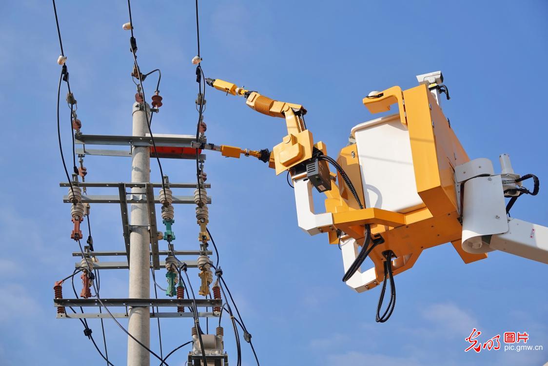 2021年12月13日,山东烟台首次使用配电网带电作业机器人,成功对线路进行了不断电维护作业。配电网带电作业机器人是一种能够在高空带电线路上进行作业的特种机器人,工作人员可通过地面控制室遥控机器人完成线路上的带电作业,能有效降低安全风险,提升作业效率,使带电作业智能化、常态化。