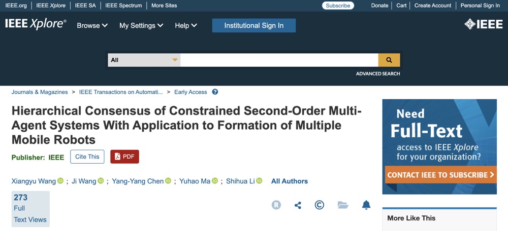 东南大学自动化学院团队在控制领域顶刊IEEE TAC以长文发表受限二阶多智能体分层控制最新研究成果